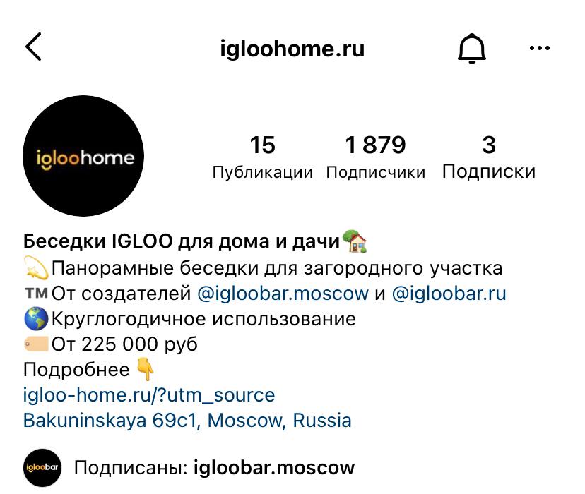 3. От создателей @igloobar.moscow и @igloobar.ru: эта строка — гарант доверия, так как бренд IglooBar известен среди аудитории.