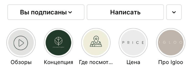 Для оформления хайлайтс мы использовали принцип — раскрытие позиционирования, презентация продукта + закрытие возражений. Поэтому выделили следующие категории: