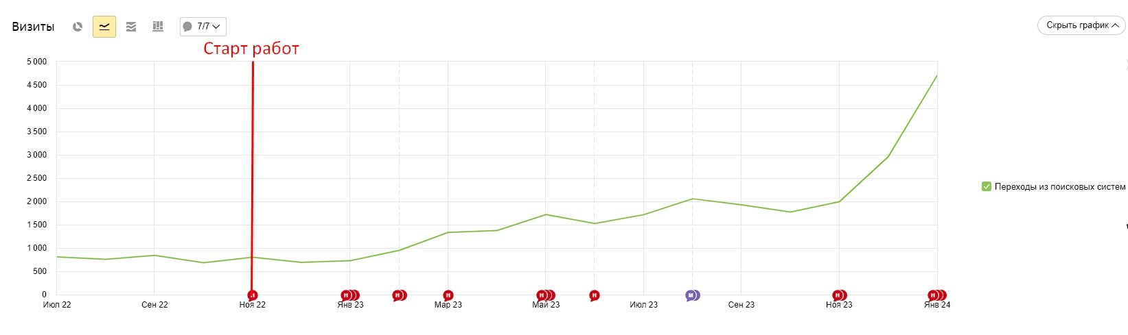 - точечная проработка текстовой релевантности (прорабатывали оптимизацию каждой отдельной страницы)