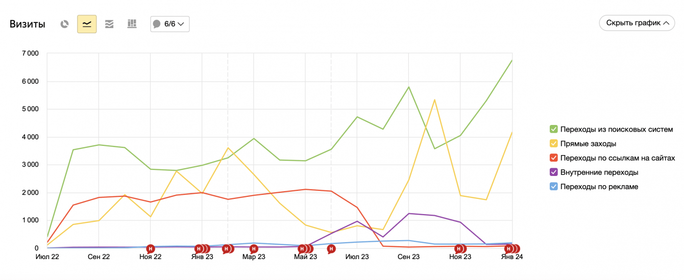 Причем, ранее посетители приходили по информационным запросам и они не приносили заявок. А мы вывели коммерческие, типа “металлокаркас купить ”. И заявки с сайта пошли!