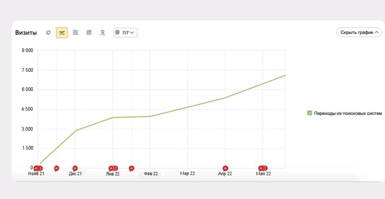 Еще одной важной составляющей, влияющий на трафик, является SEOоптимизация. По созданному семантическому ядру стали дополнять сайт текстами. Какие-то пришлось редактировать, другие — писать с нуля. Для этого обратились к копирайтеру, который получал комментарии по содержанию от заказчика. В процессе нанятый копирайтер взаимодействовал с копирайтером со стороны заказчика. Не сразу все шло гладко, зато у нас получилось создать не просто тексты с ключевыми словами. Они были максимально наполненные описанием и фактической информацией