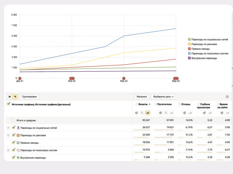 на сайт приходили и с поиска, и с рекламы. Небольшая проработка SEO