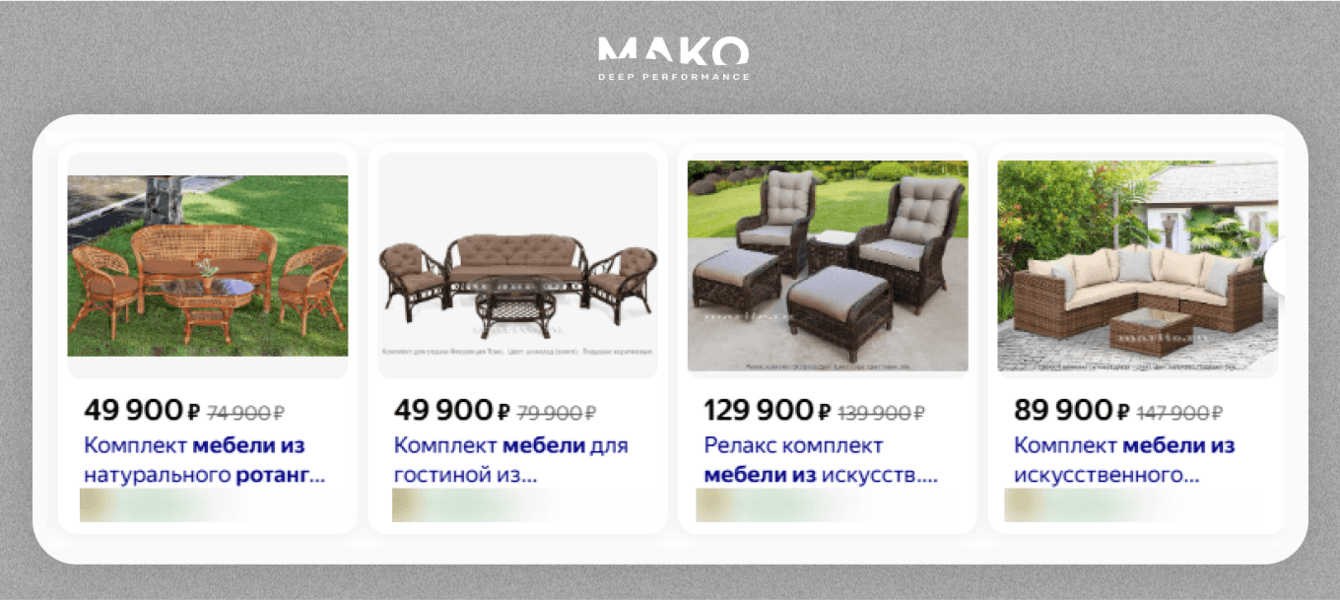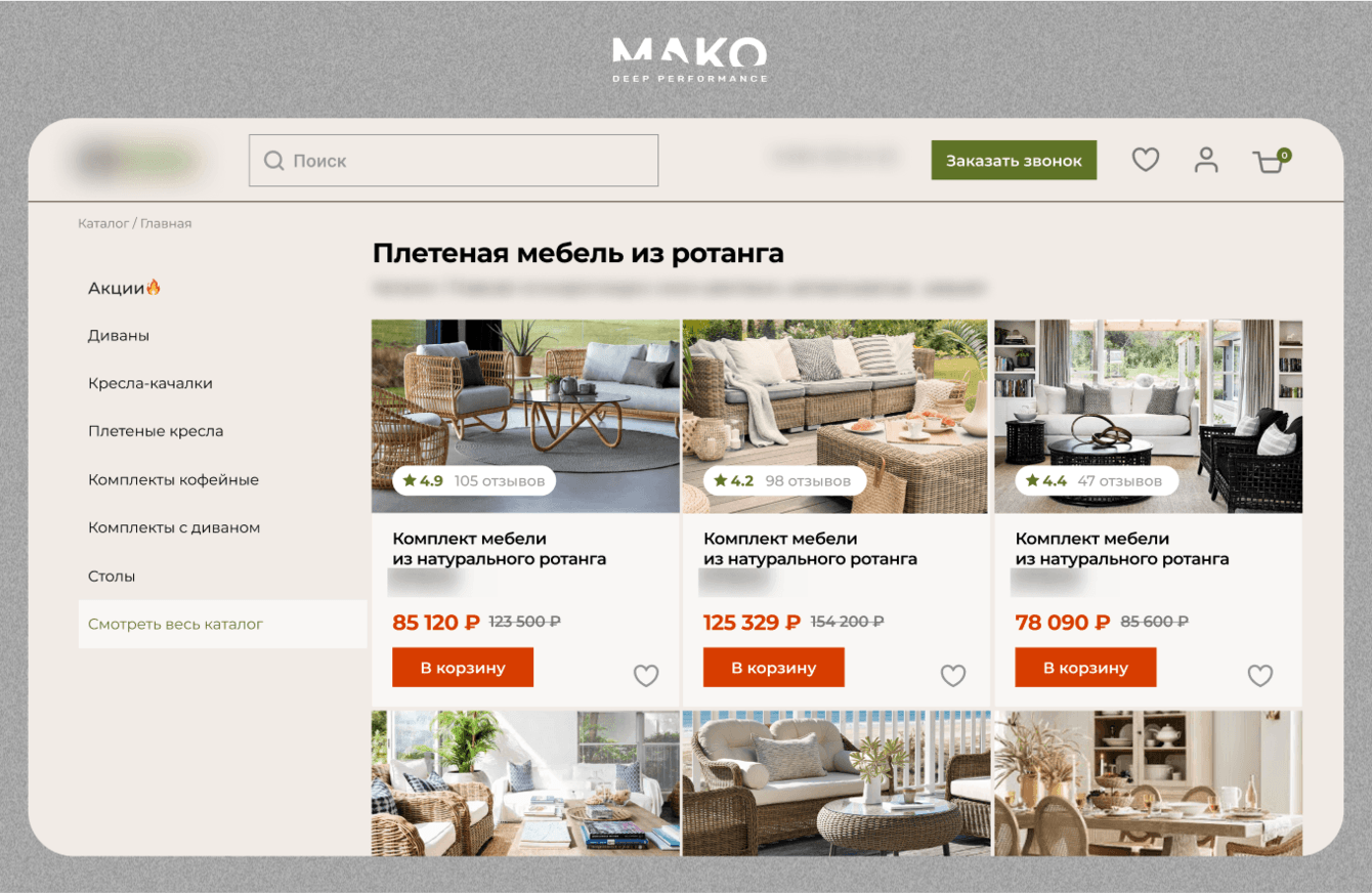 - Не отдельные модели, а всю категорию товаров — вели пользователя на страницу каталога с разными комплектами мебели из ротанга, чтобы дать покупателю широкий выбор.