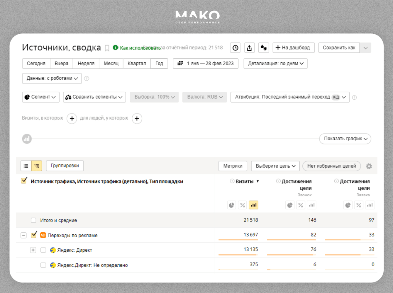 Это отчет из Метрики по соотношению трафика с рекламы Товарной кампании, с ручным фидом
