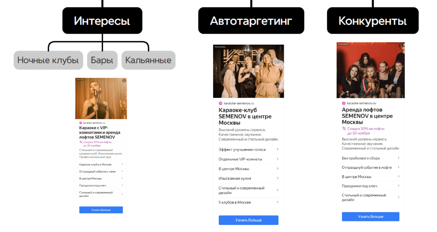 Так как мы делали ставку на автотаргетинг, то важно было создать максимально простые заголовки, чтобы при определении аудитории алгоритмы ориентировались на них и правильно подбирали пользователей, которым будет показана реклама.