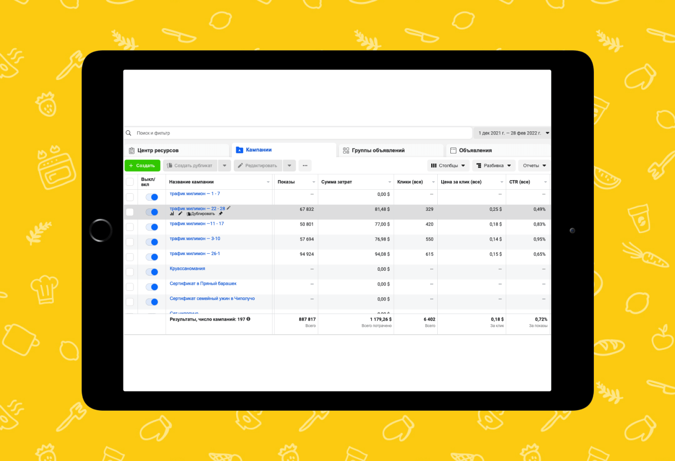 При запуске рекламы больше всего был задействован сайт клиента, основная часть бюджета была распределена на него. На сайт был поставлен пиксель для более точного учета количества заказов и сбора аудитории для ретаргетинга.