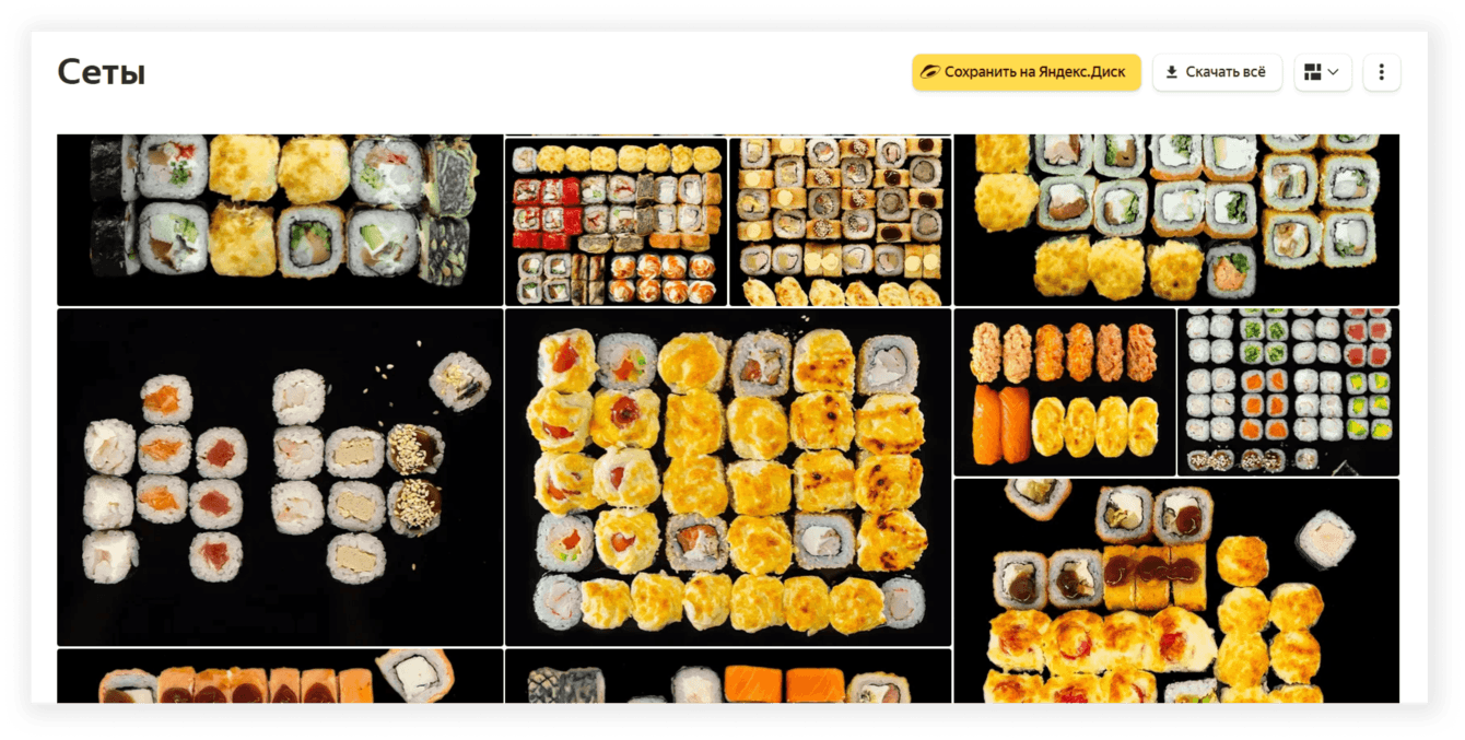 В настройках сообщества подключили раздел «товары», а для удобства поделили его на подборки: «Акции», «Пицца», «Роллы», «Лапша» и так далее. И также для каждого блюда добавили описание: состав, вес и кол-во порций в сетах.