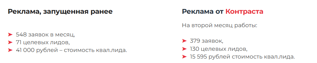 Оперативно увеличили количество целевых заявок в 2 раза. Дополнительный плюс: отдел продаж перестал тратить много времени на пустые прозвоны и смог сконцентрироваться на работе с целевыми лидами. Это помогло нам растопить лёд в общении и получать конструктивную обратную связь по лидам.