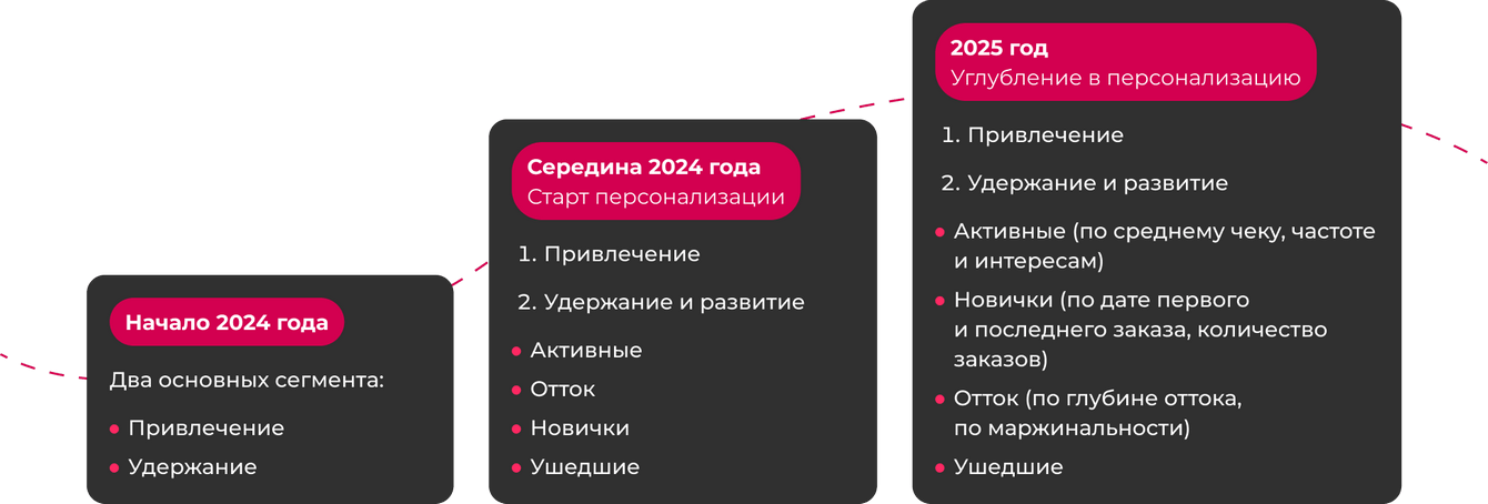 В поиске путей дальнейшего развития возникла гипотеза, что улучшить результаты поможет персонализация. Идея опиралась на успешный опыт офлайн-команды бренда.