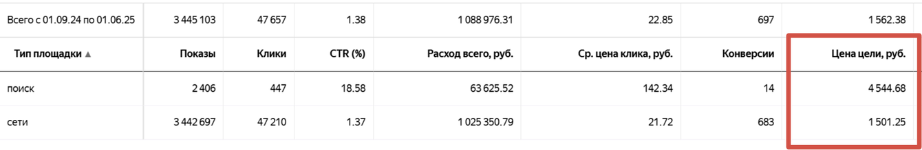 – РСЯ: значительно более низкая стоимость лида