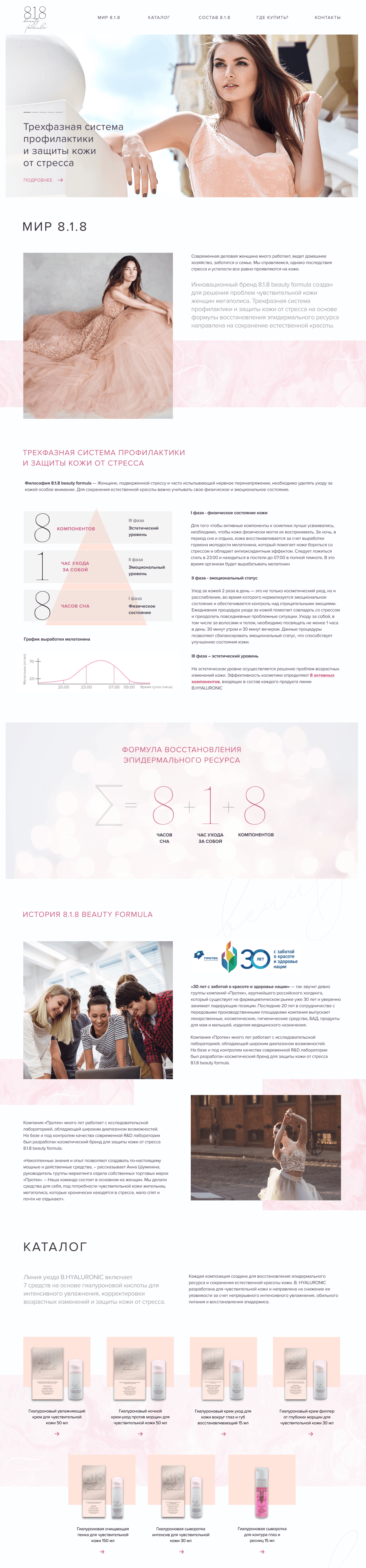 Инновационный бренд 8.1.8 beauty formula создан для решения проблем чувствительной кожи женщин мегаполиса. Трехфазная система профилактики и защиты кожи от стресса на основе формулы восстановления эпидермального ресурса направлена на сохранение естественной красоты.