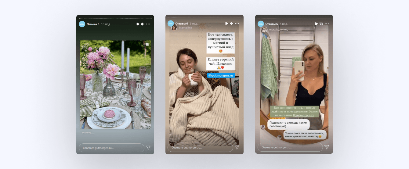 Фактор № 8. Вовлекающий и игровой контент. В сторис одна из наших основных задач - продлить время взаимодействия подписчика с контентом. Часто мы устраиваем незамысловатые опросы, которые так любит публика в соцсетях - например, выбери цвет полотенца, в каком фирменном стиле оформить спальню, какая сервировка на завтрак нравится. Или делаем подробный рассказ о составе продукта с красивым визуалом и описываем, под какие интерьерные решения он лучше всего подойдет.