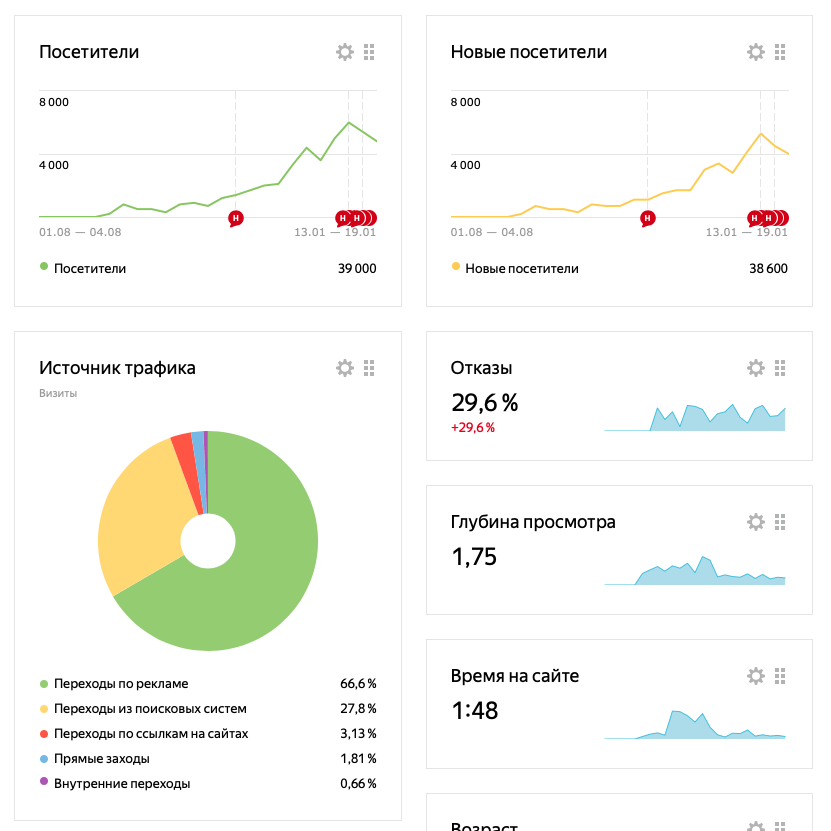 Регулярный анализ предоставленной отчётности показывал высокую эффективность рекламных кампаний, включая низкую стоимость клика, стабильно высокий CTR, низкий процент отказов и хороший уровень вовлечённости пользователей.