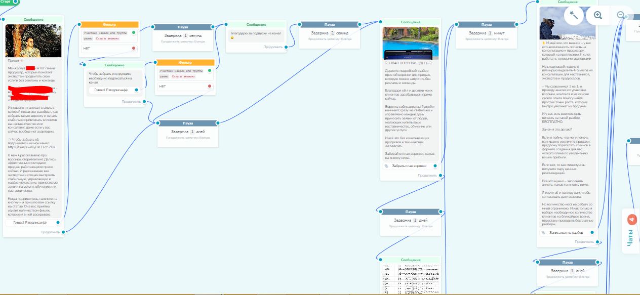 На первом этапе попадая в бота, потенциальным клиентам предлагалось получить решение их проблемы (лид-магнит) в виде пошагового плана взамен на подписку на канал Марка. Таким образом он использовал сразу два инструмента для реализации своих целей: и тг-канал, и чат-бота.