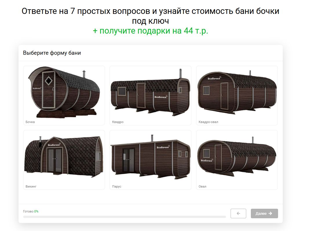 Цель – увеличить поток заявок на бани-бочки и показываться на первых местах поисковой выдачи.