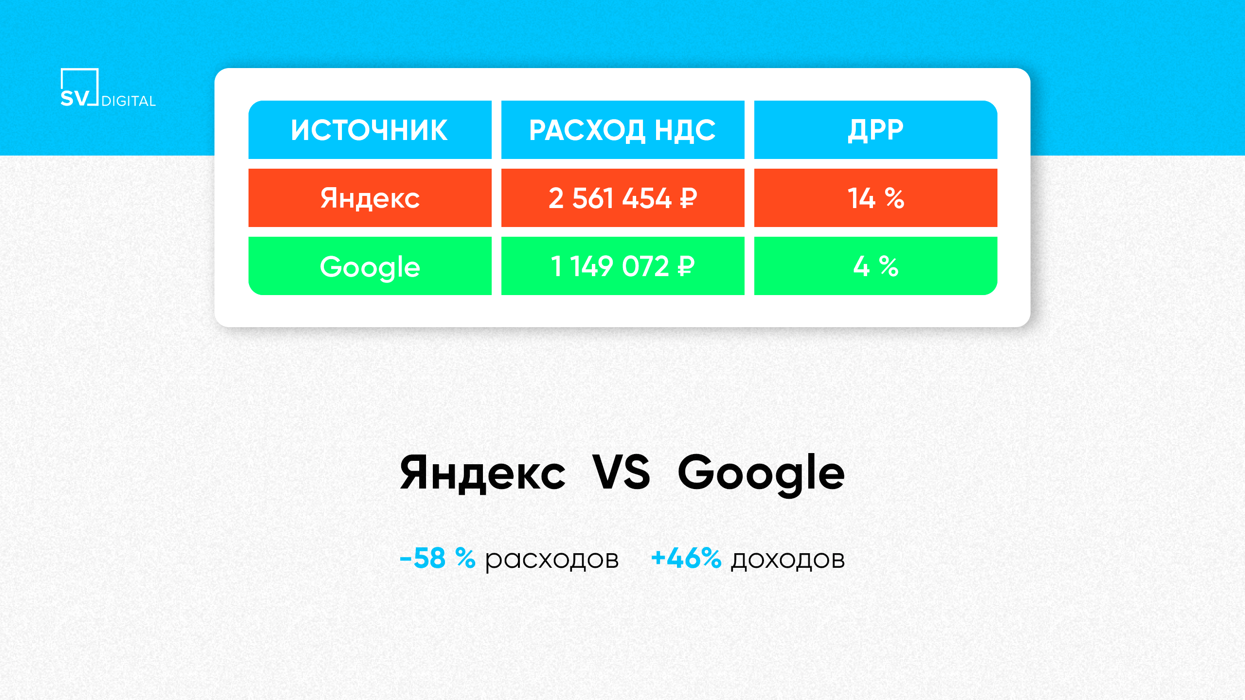 2. Бюджет отдали Яндексу, хотя Google работал на 58% лучше