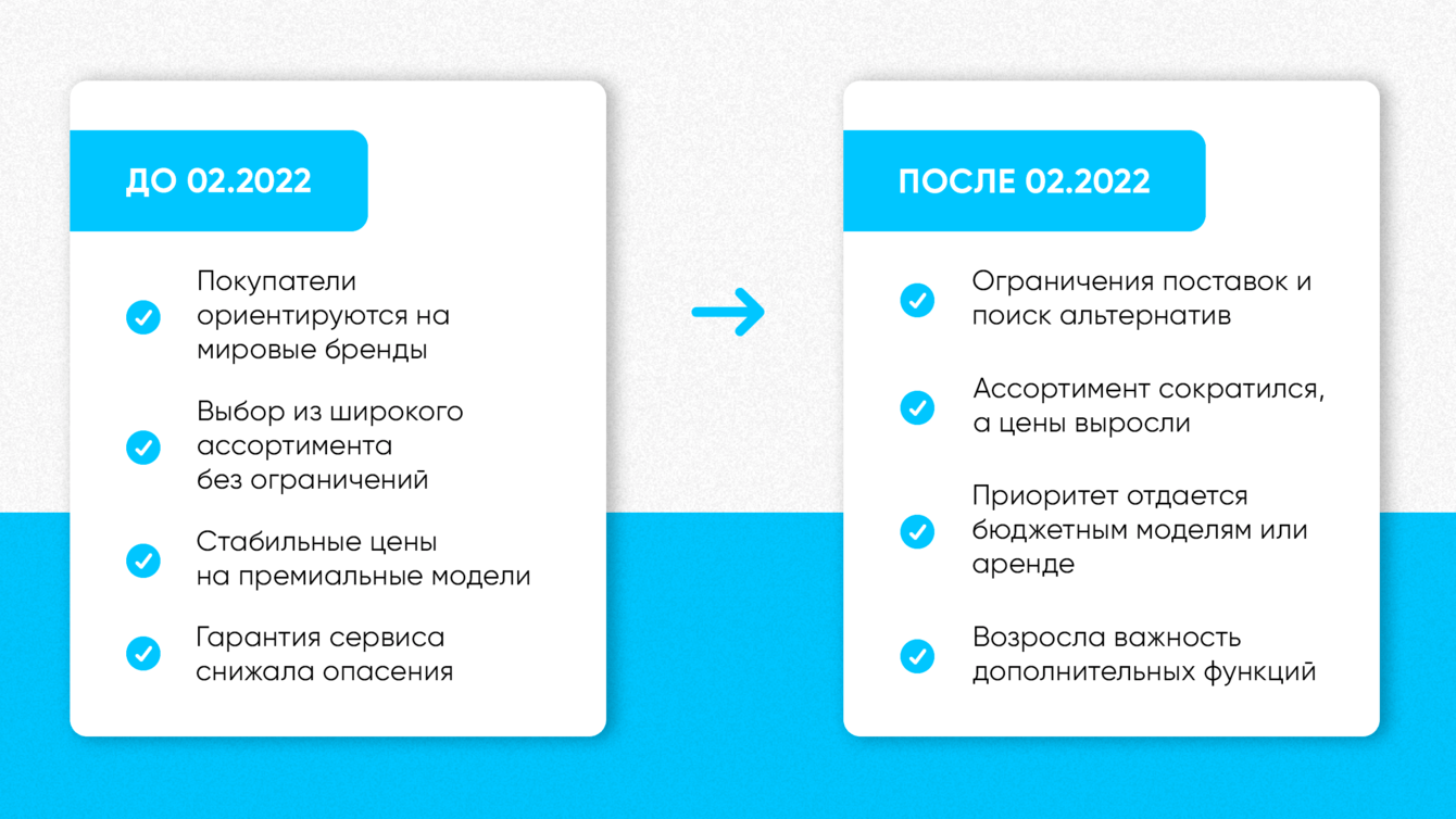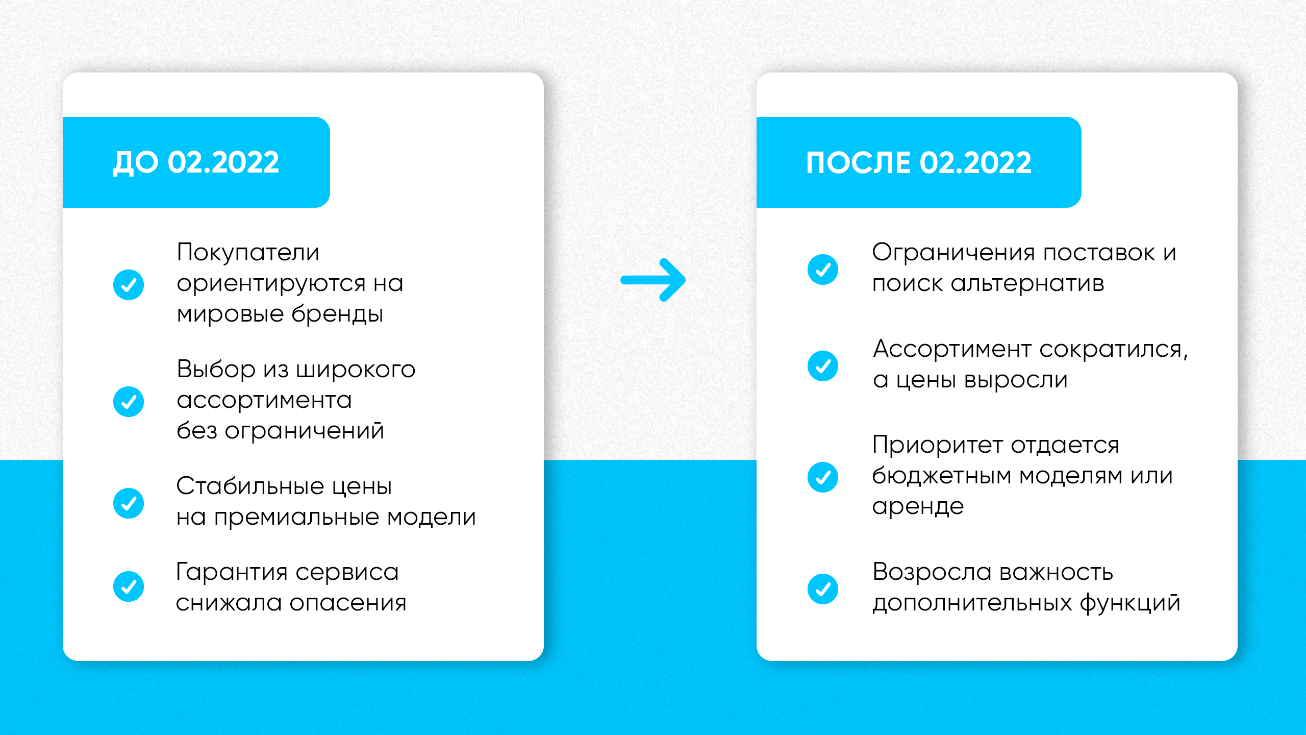 В феврале 2022 года Google приостановил показ рекламы на территории России. Одновременно с этим заказчик столкнулся со сложностями в поставке оборудования. Склад пустел, а новых поставок не было. Количество заказов снизилось до 1-2 в месяц.