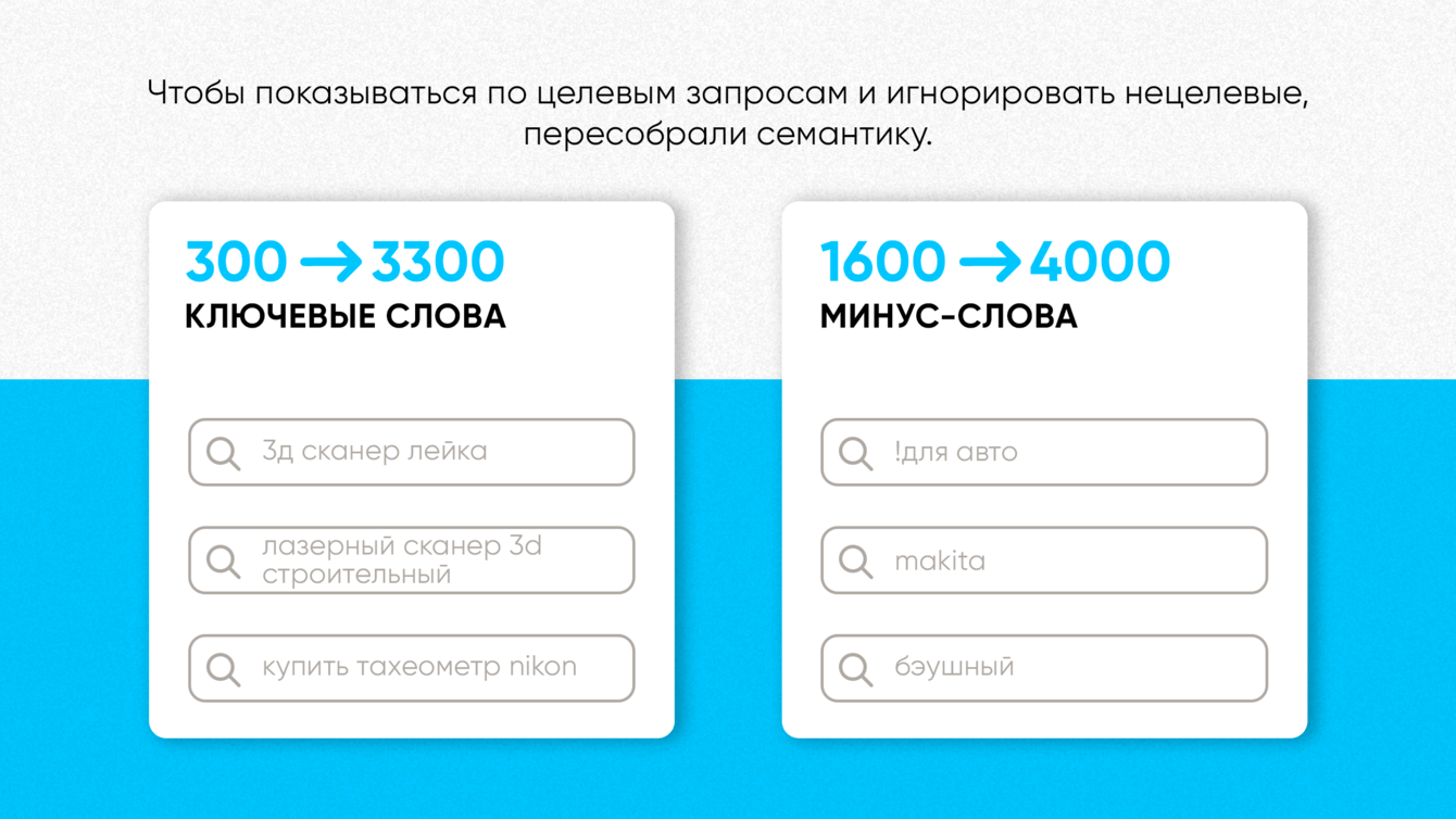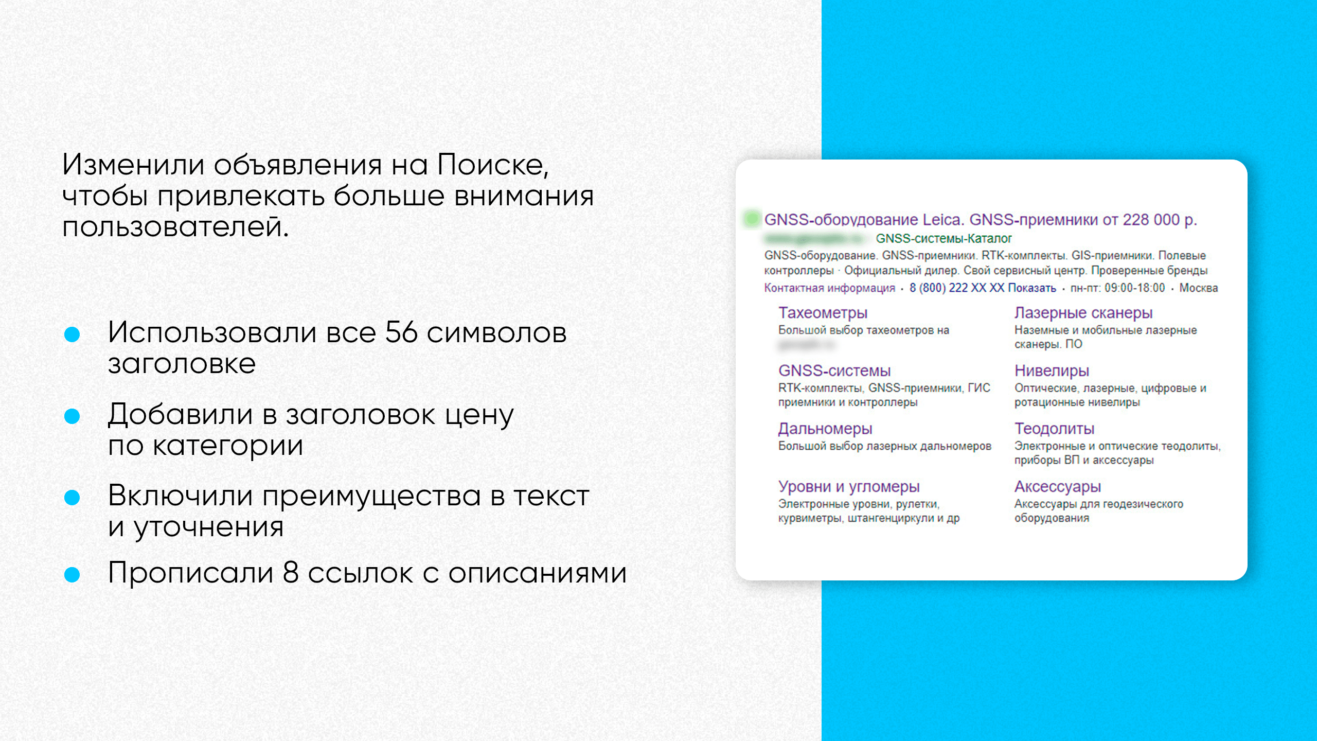 Летом 2021 года к нам обратился Сергей, руководитель компании по продаже и обслуживанию геодезического оборудования. Интернет-магазин продает 4 000 товаров, а доставка осуществляется по России и в страны бывшего СНГ. Компания работает с 2010 года. За это время удалось создать пул постоянных клиентов. Также хорошие позиции в сео-выдаче позволяли получать приток новых обращений.