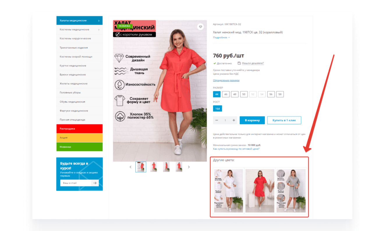Для усиления поведенческих факторов и для удобства пользователей вывели в карточке ссылки на другие цвета данной модели: