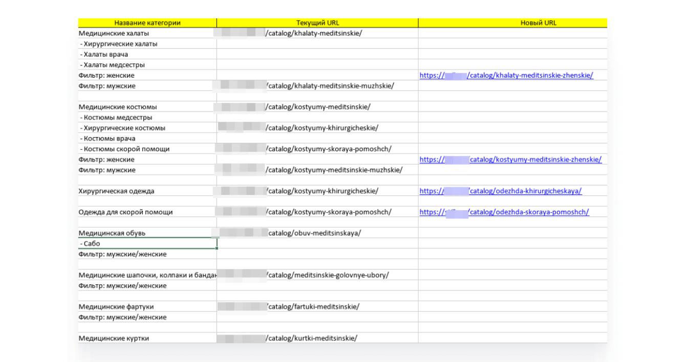 Проанализировали конкурентов из ТОПа и текущую структуру каталога, составили свои рекомендации по добавлению новых разделов, подразделов, фильтров: