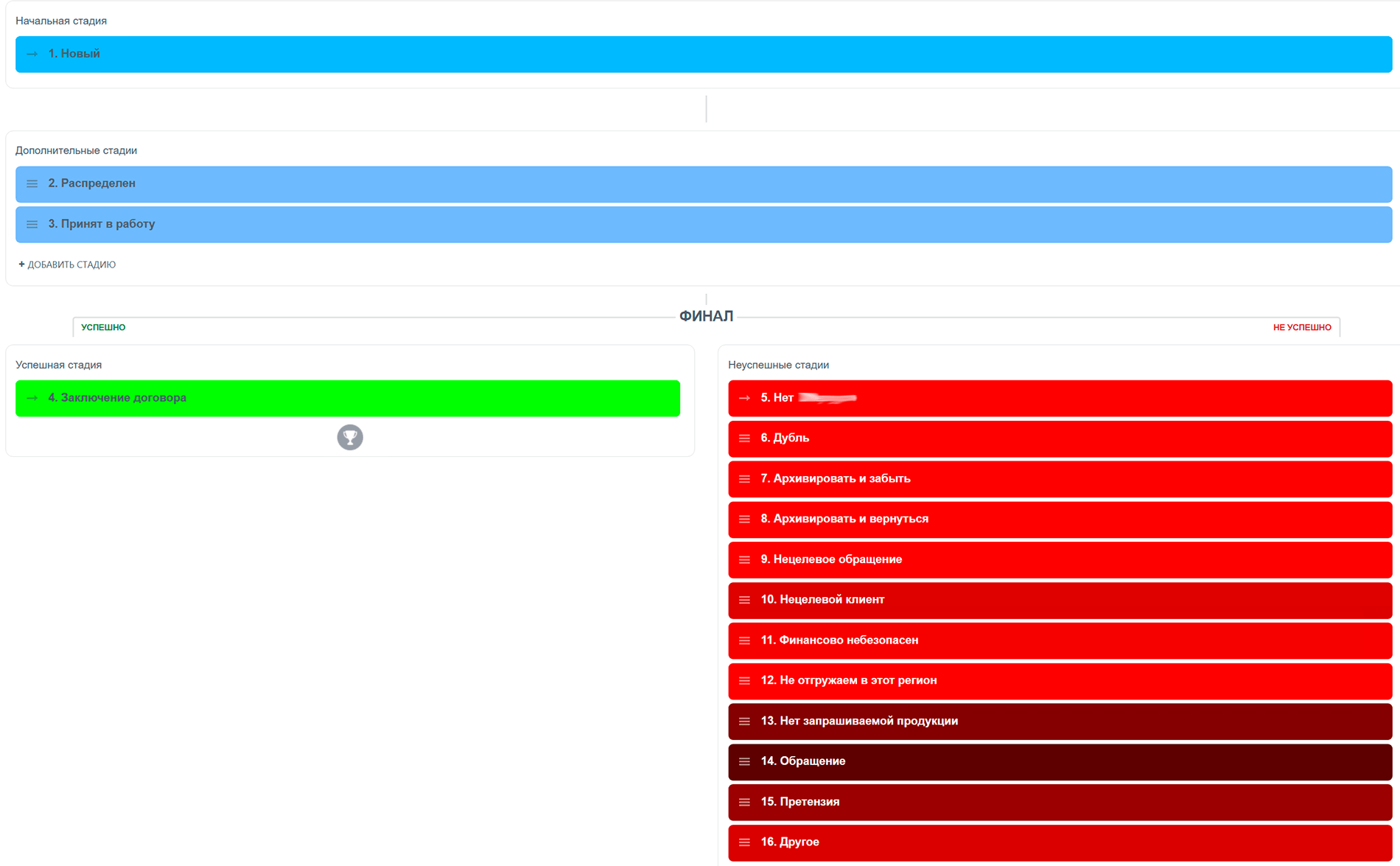 1. Лиды — создаются вручную или автоматически, распределяются по направлениям.