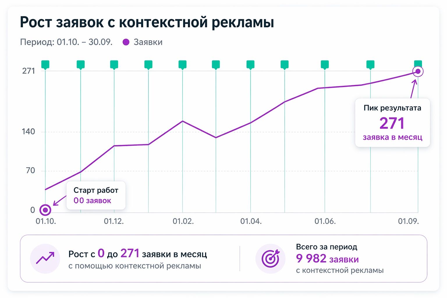 🏆Заявки с контекстной рекламы: 0 → до 271 заявки в месяц
