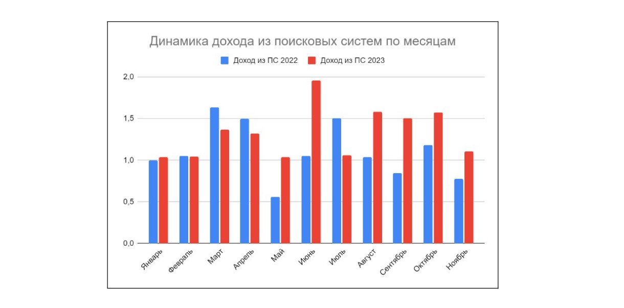 Доход по переходам из поисковых систем в среднем вырос в 2023 на 20%.