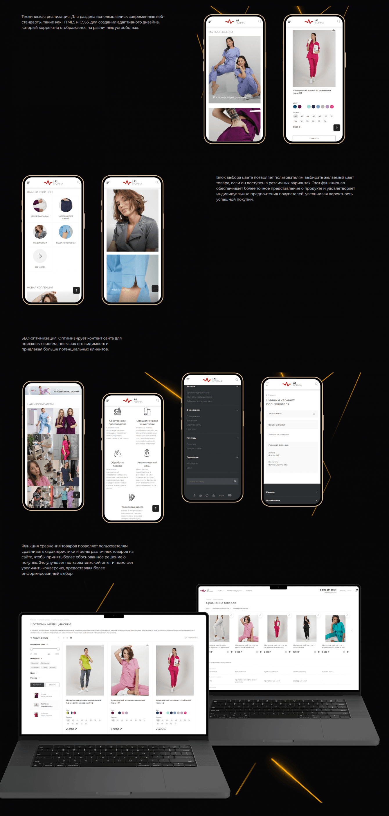 Разработан интуитивно понятный веб-сайт с четкими категориями товаров, удобной системой фильтрации и поиска. Интегрирован с CRM системой компании для автоматизации процессов работы с заказами. Реализована адаптивная верстка для корректного отображения на всех типах устройств. В результате запуска сайта, за первые три месяца удалось увеличить конверсию на 15%.