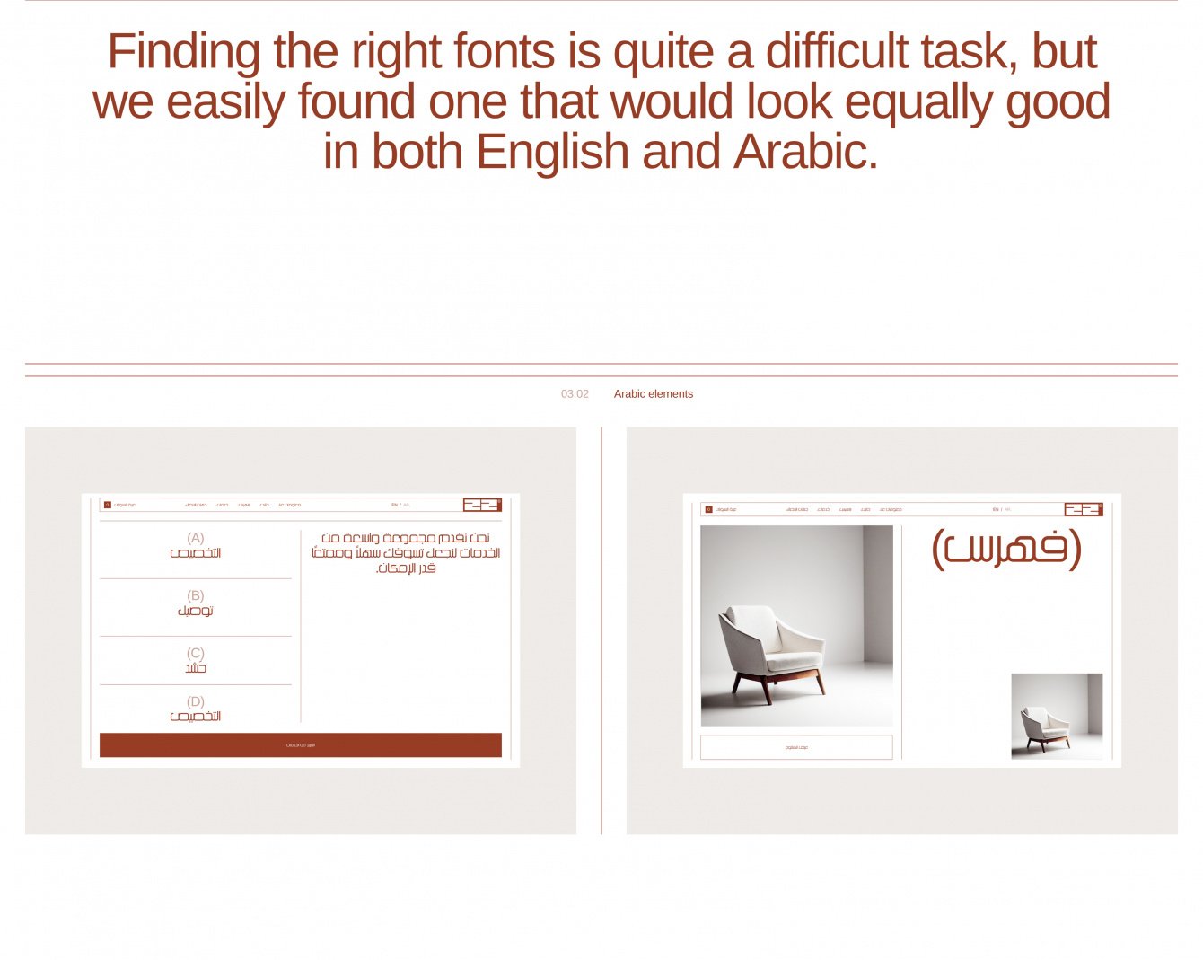 Довольно трудной задачей для нас стал поиск подходящих шрифтов - не так просто найти образец, который будет одинаково хорошо смотреться и на английском и на арабском.