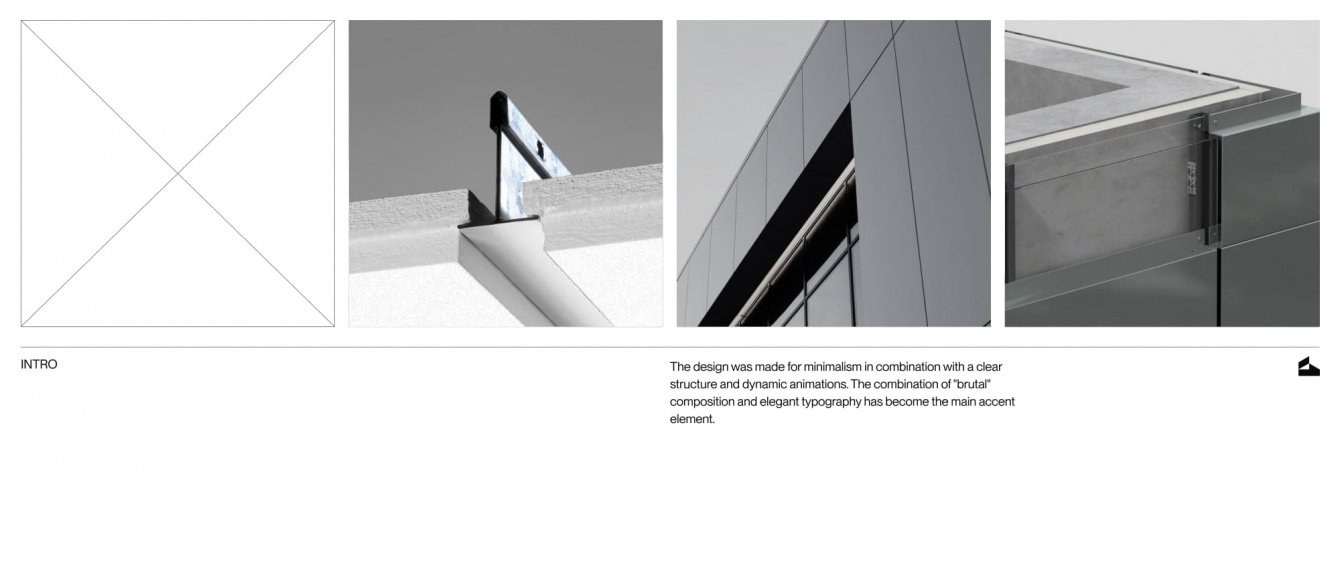 В дизайне сделали упор на минимализм в сочетании с четкой структурой и динамичными анимациями. Сочетание «брутальной» композиции и изящной типографики стало основным акцентным элементом. Также поработали над брендингом — обновили логотип, модернизировав предыдущий вариант. Новый лого символизирует сборную фальшпанель, и тяжёлую несущую конструкцию, которая прячется под видом красивых накладных стен и потолков.