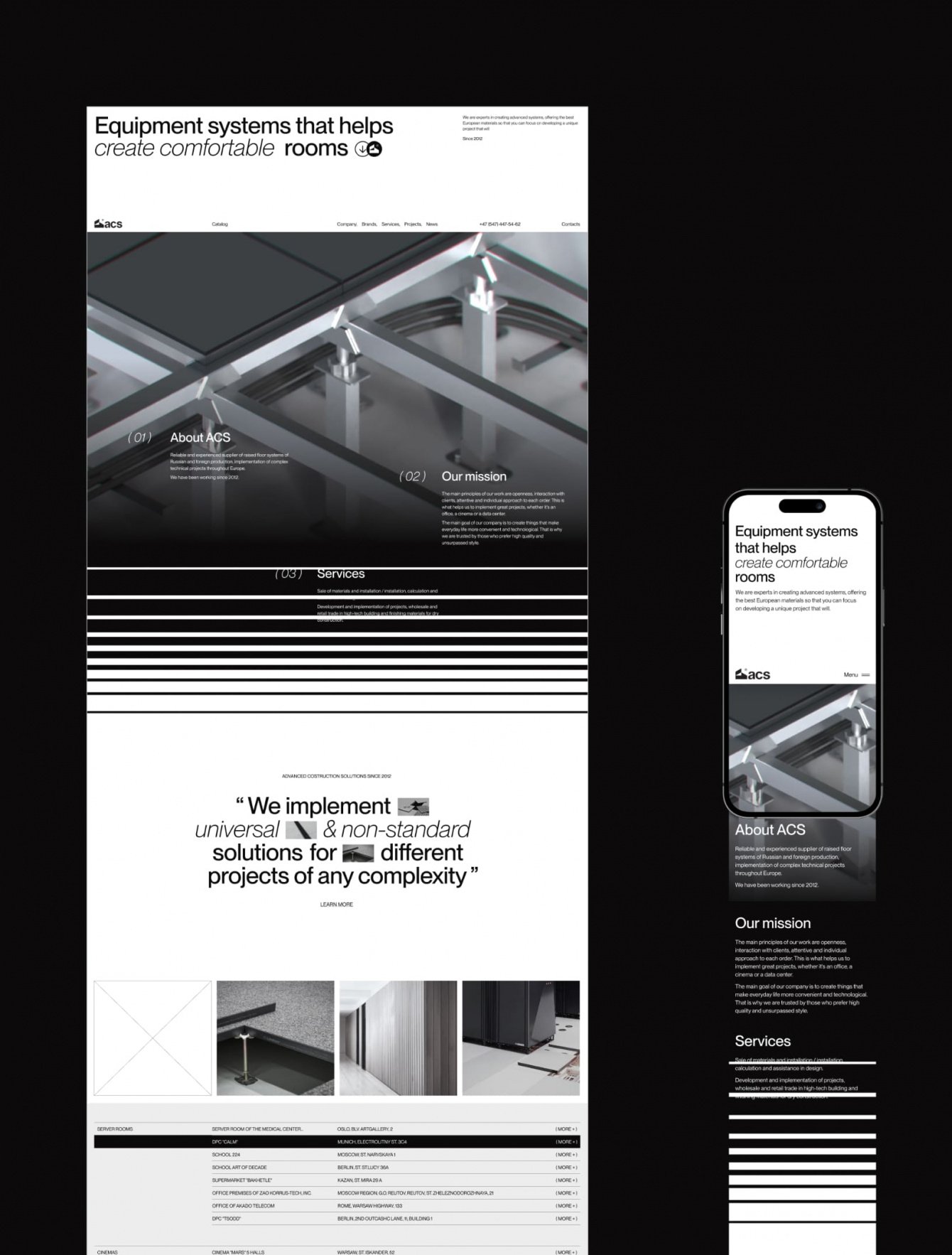 Новый проект для компании ACS. Ребята занимаются продажей фальшполов и настенных панелей для помещений различного назначения.