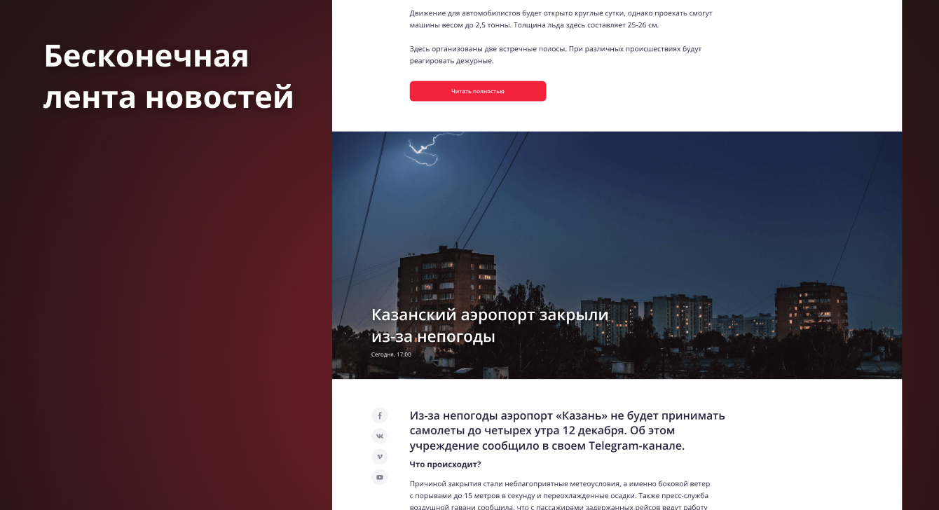 — интегрировали бесконечную ленту новостей — это актуальная история во многих интернет-магазинах и маркетплейсах. Мы же использовали этот тренд, чтобы читатели могли спокойно изучать материалы, не прерываясь на переключение статей.