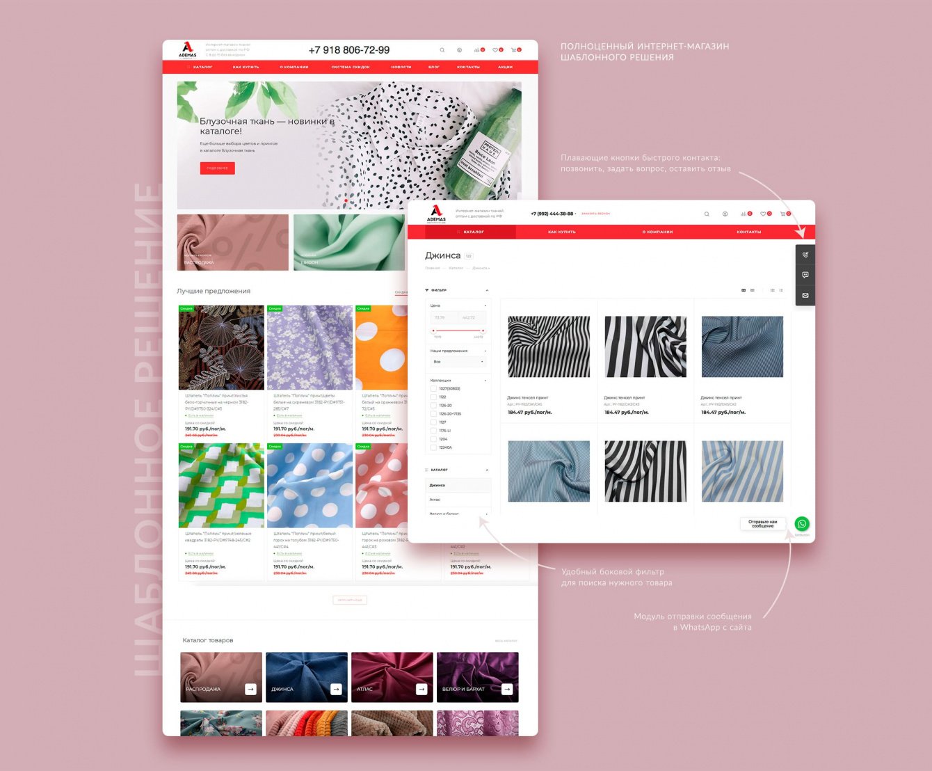 Много лет компания успешно занималась торговлей тканью оптом и розницу оффлайн. Но в 2020 году расширение рынка сбыта и желание охватить онлайн аудиторию привело к потребности создания интернет-магазина.