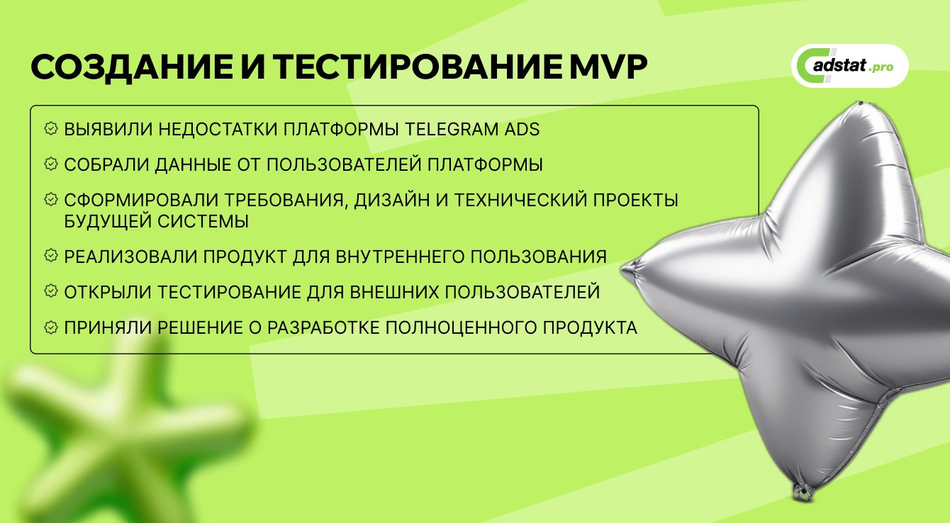 На данный момент мы продолжаем работу над системой Adstat.pro. Активно собираем обратную связь пользователей, изучаем тенденции рынка и погружаемся в тонкости законодательства. Наша цель – чтобы продукт был актуален и эффективен, чтобы он не только закрывал потребности, но и предвосхищал запросы всех, кто работает над продвижением в Telegram Ads.