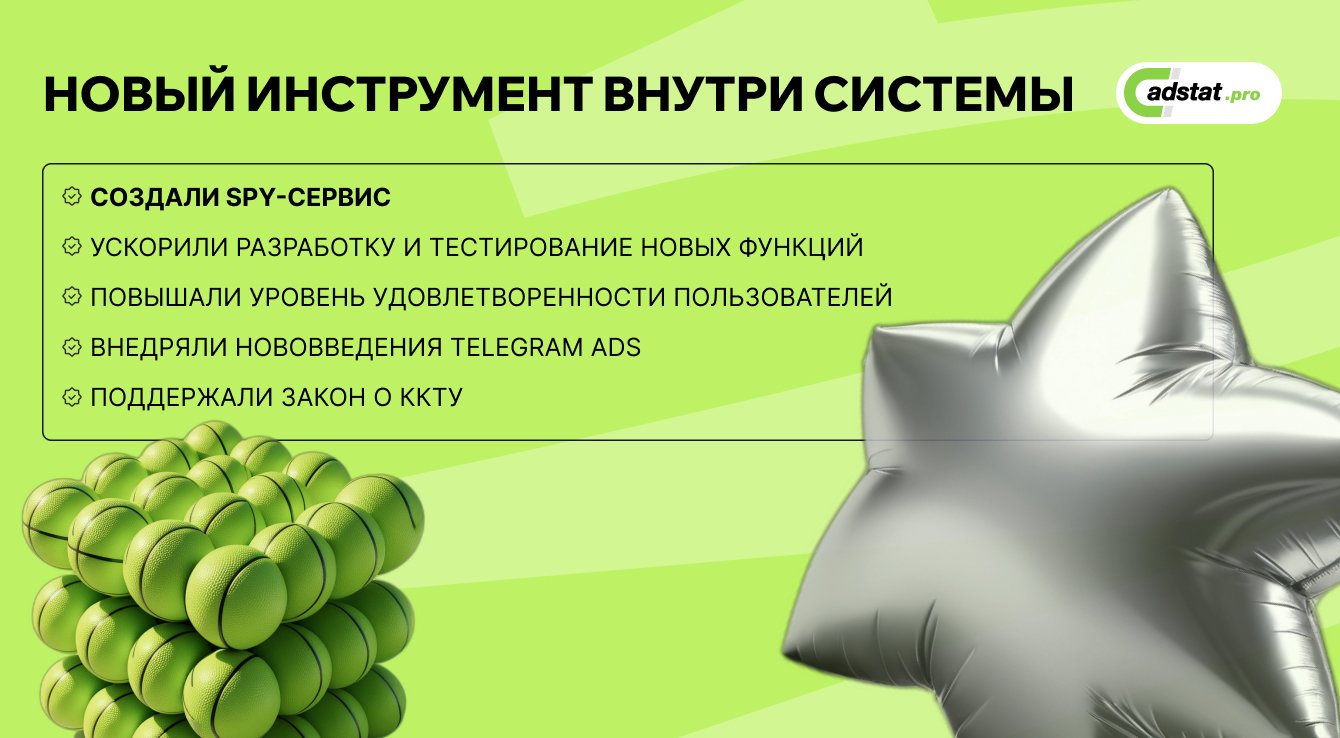 Параллельно мы поддерживали в системе новые возможности, которые появлялись на самой платформе Telegram Ads, а также продолжали работу над расширением функций системы Adstat.pro, как в части управления рекламными кампаниями, так и в части сбора и анализа статистических данных по рекламным кампаниям.