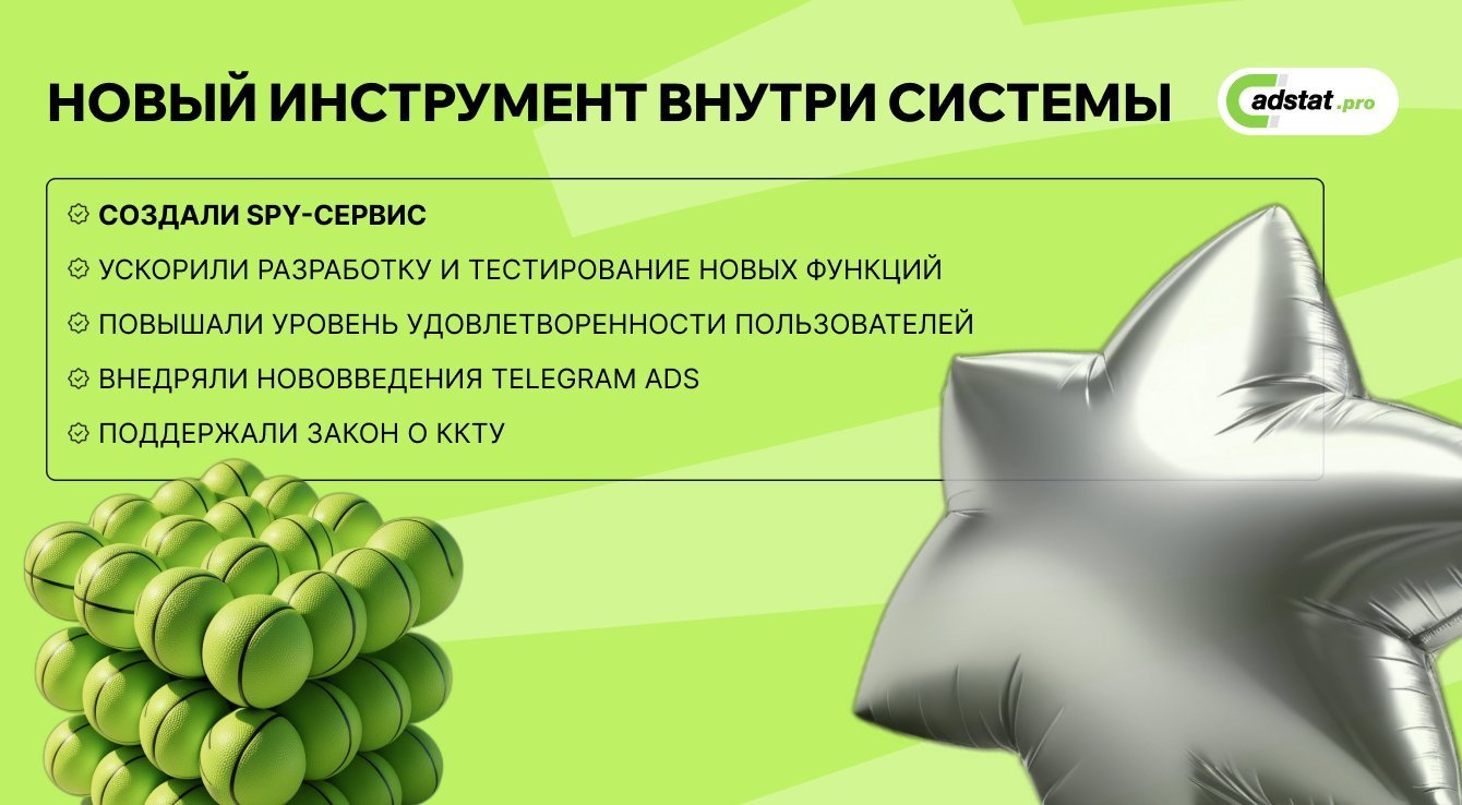 Изменения в процессах позитивно отразились на развитии системы Adstat.pro. Уже в июле 2024 года внутри Adstat.pro был реализован Spy-сервис, который стал бесплатно доступен пользователям.