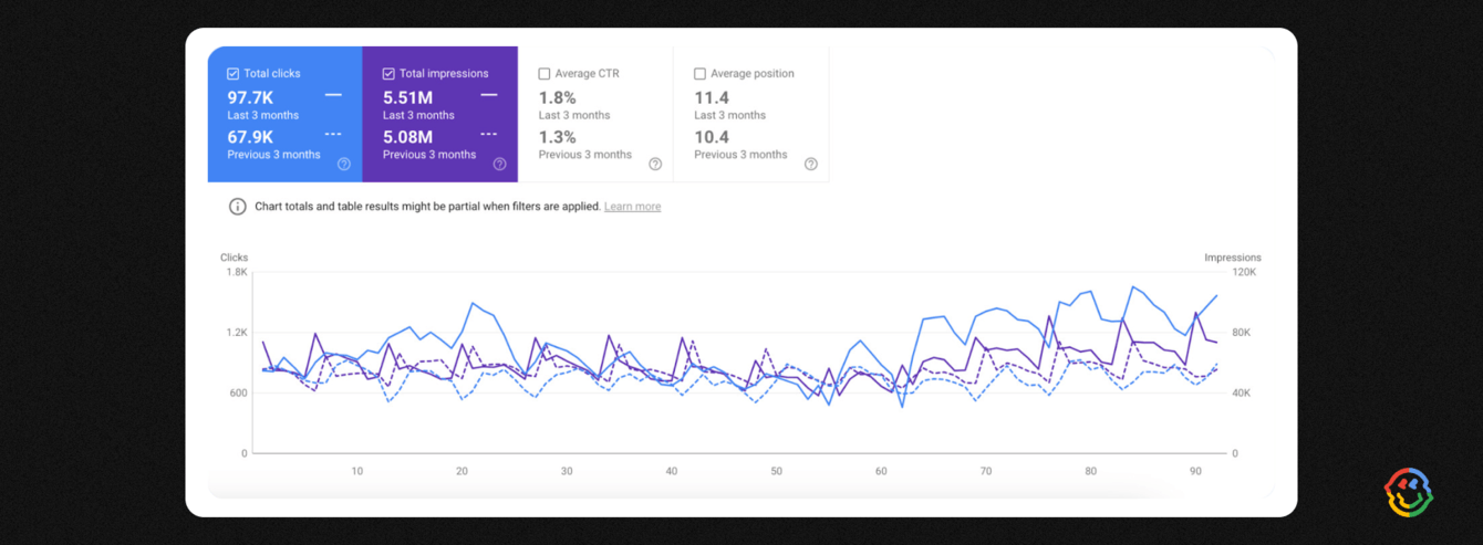Общее количество кликов выросло до 97,7 тысяч