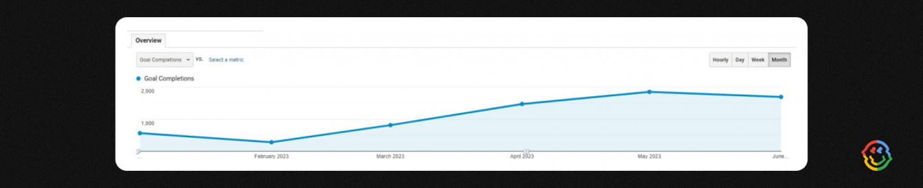 Достижение целей — почти 2000 в месяц. Январь 2023 — июнь 2023