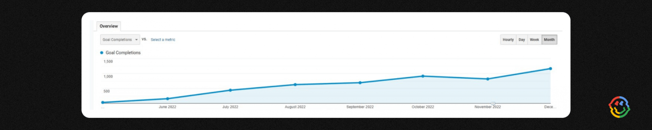 Достижение целей — чуть больше 1000 в месяц. Май 2022 — декабрь 2022