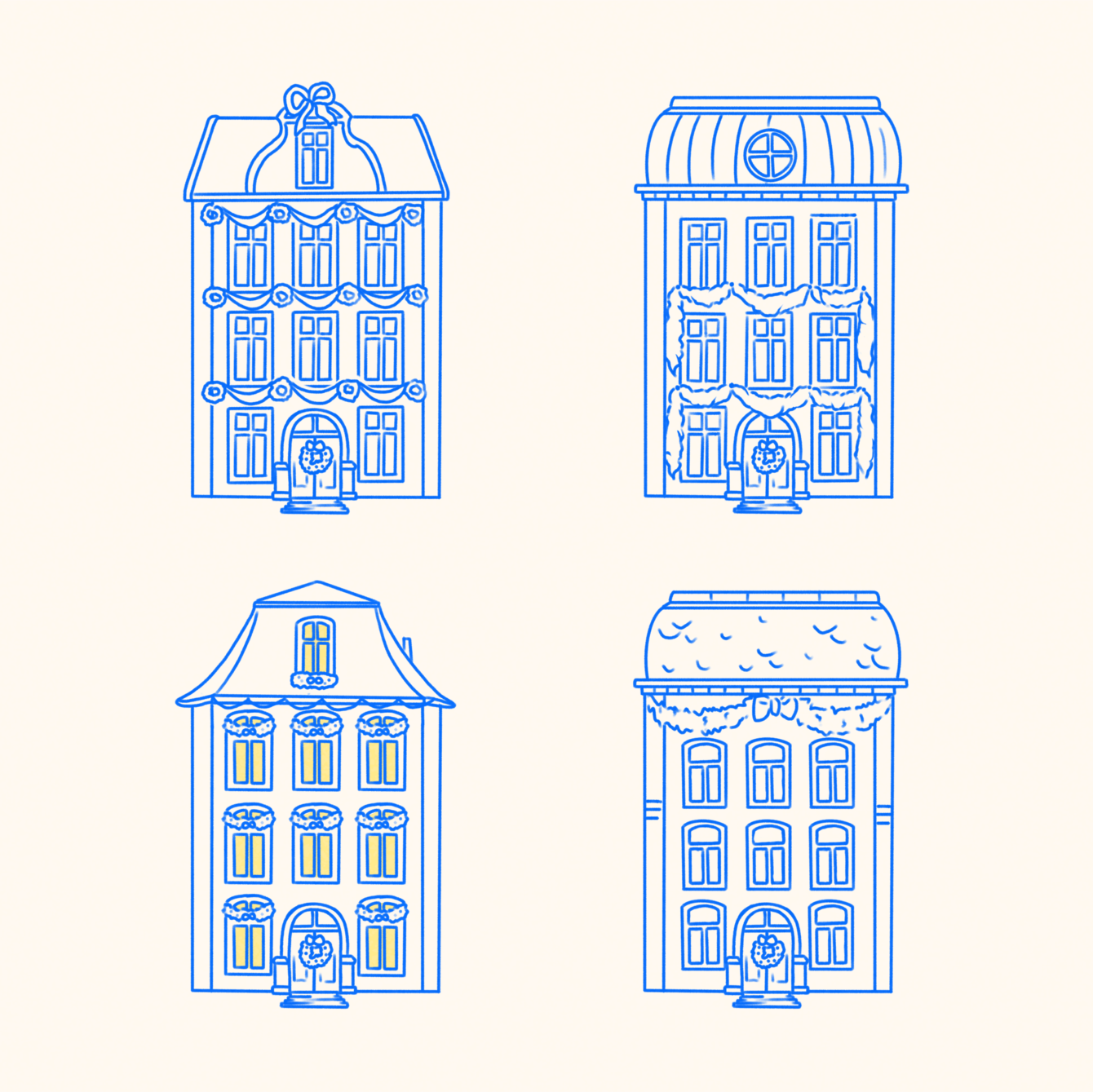 Наша команда разработала несколько концепций адвент-календаря. Первой идеей стала гора с подарками разных форм и размеров. Второй — набор новогодних игрушек, связанный с традицией украшать елку. В итоге мы остановились на третьей концепции — уютном доме с девятью окнами.