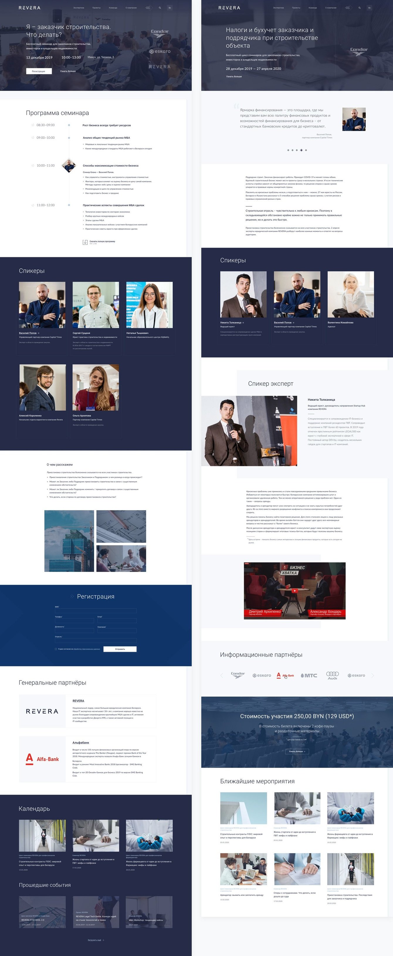 - Благодаря конструктору лендингов позволяет удобно и гибко анонсировать семинары и конференции, которые регулярно проводит REVERA.