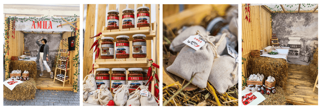 «АМЦА» — бренд традиционной абхазской аджики. В сентября 2023 они планировали участвовать в Фестивале абхазской культуры «Апсны». Нужно было присутствие, отражающее традиции Абхазии, но в то же время оно должно было стать привлекательным для современной аудитории. Из задач: оформить стенд, разработать мерч и активности, а в день мероприятия — присутствовать на площадке.