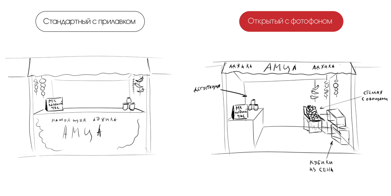 Чтобы знакомить посетителей с брендом, аджику предлагали дегустировать. Её сервировали со свежими овощами, зеленью и лавашом.