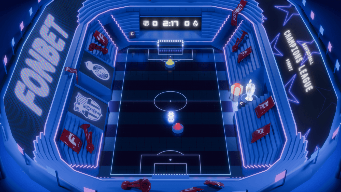 Аэрофутбол — игра в формате 3D веб, где пользователю нужно победить в Лиге чемпионов через механику диджитального аэрохоккея. Счастливчики, пробившиеся в плей-офф, могут участвовать в конкурсе от Fonbet.