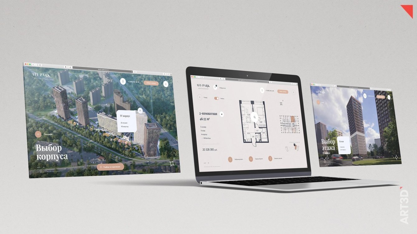 С технической точки зрения нам удалось добиться максимального «присутствия» в проекте благодаря 3D- и Digital-технологиям, которые наша команда совершенствует из проекта в проект: сферические 3D-панорамы 360 градусов благодаря высокой детализации 3D-модели проекта просчитаны в высочайшем разрешении (более 8000 пикселей по широкой стороне), что позволило сделать фотографическое качество рендеринга без потери качества и мелких деталей, а благодаря интерактивным технологиям сайтостроения (html5, ccs3, vue.js) мы получили потрясающий иммерсивный эффект знакомства с проектом на любом устройстве: стационарных компьютерах, ноутбуках, планшетах и мобильных устройствах.