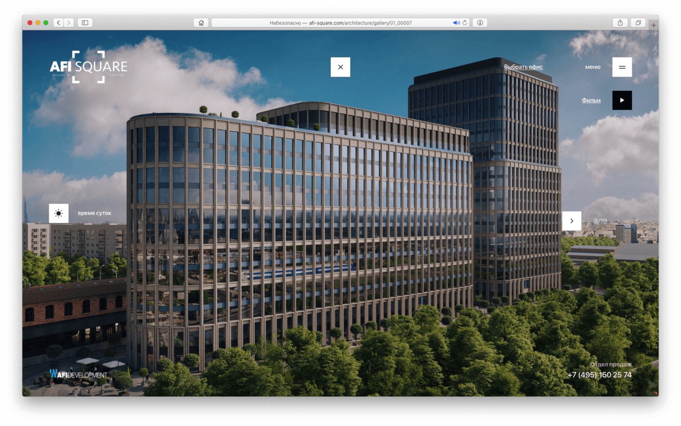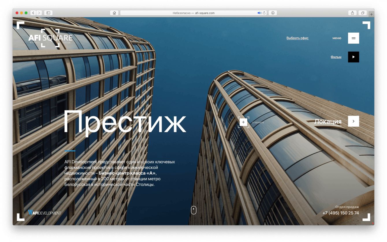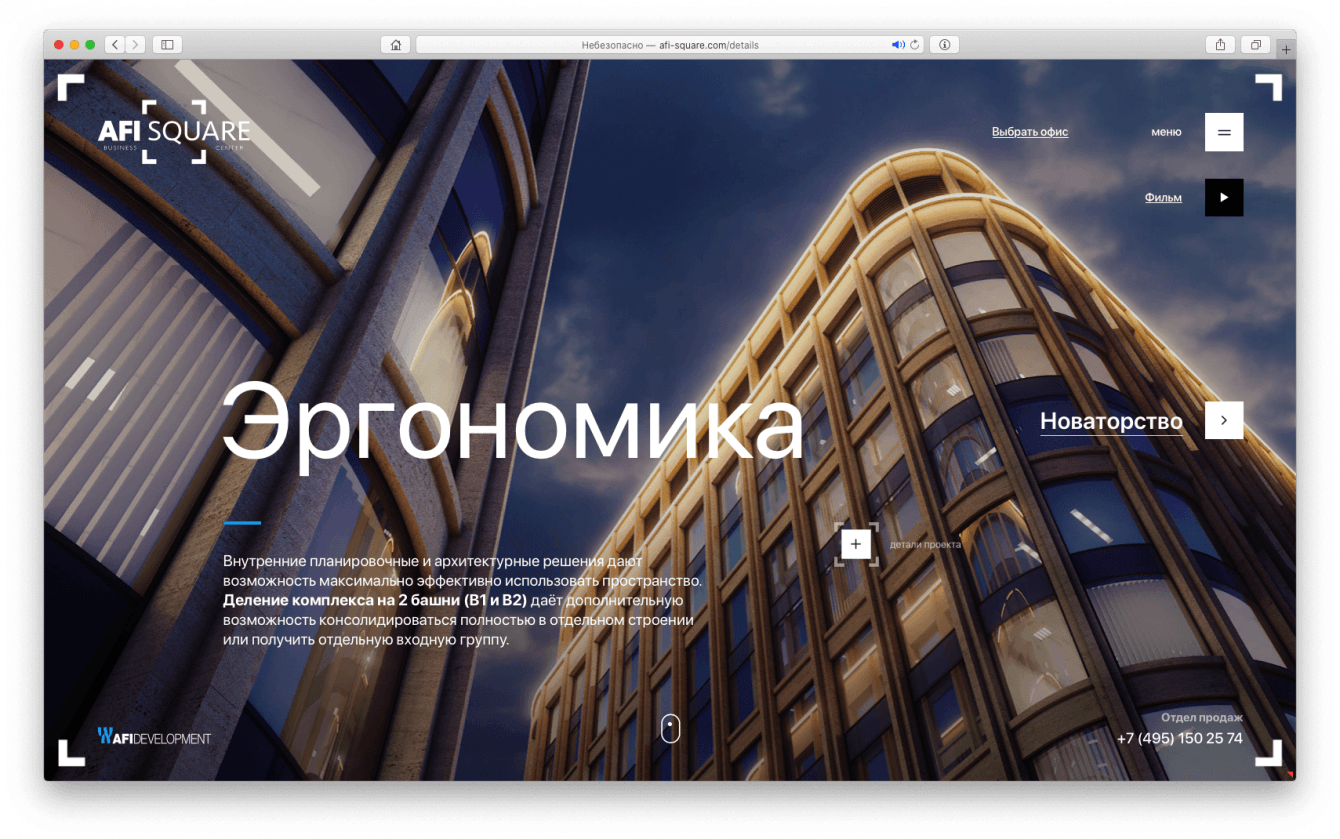Разработать дизайн-код подачи проектов премиальной коммерческой недвижимости в интернете для компании AFI Development и вывести на рынок флагманский проект в сфере коммерческой недвижимости – бизнес-центр класса «А» AFI SQUARE.
