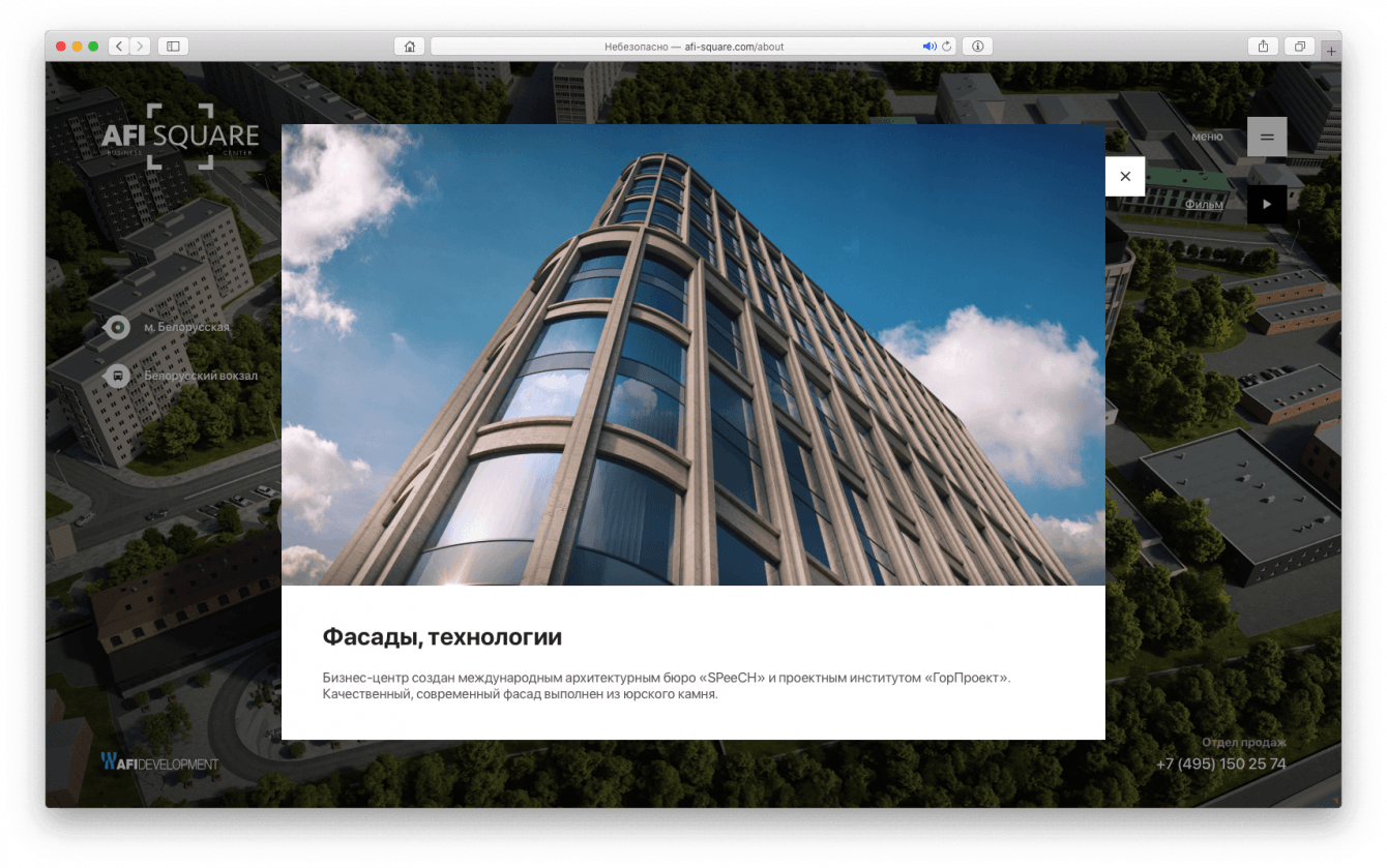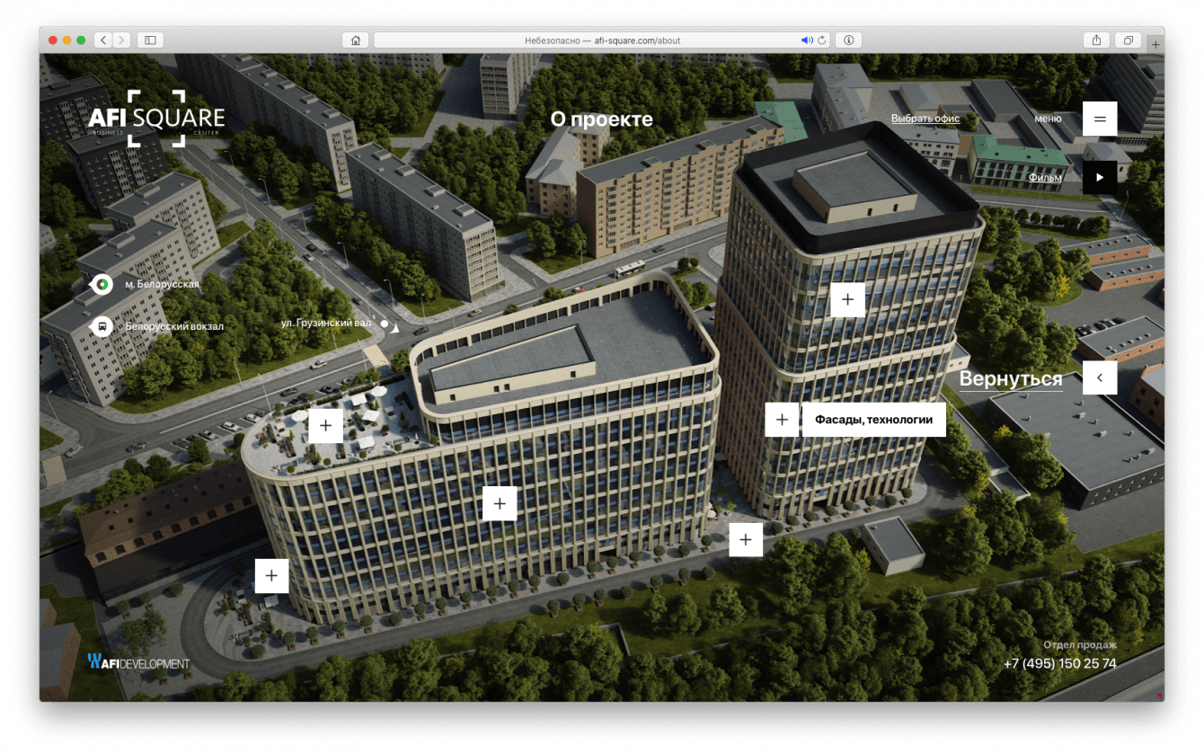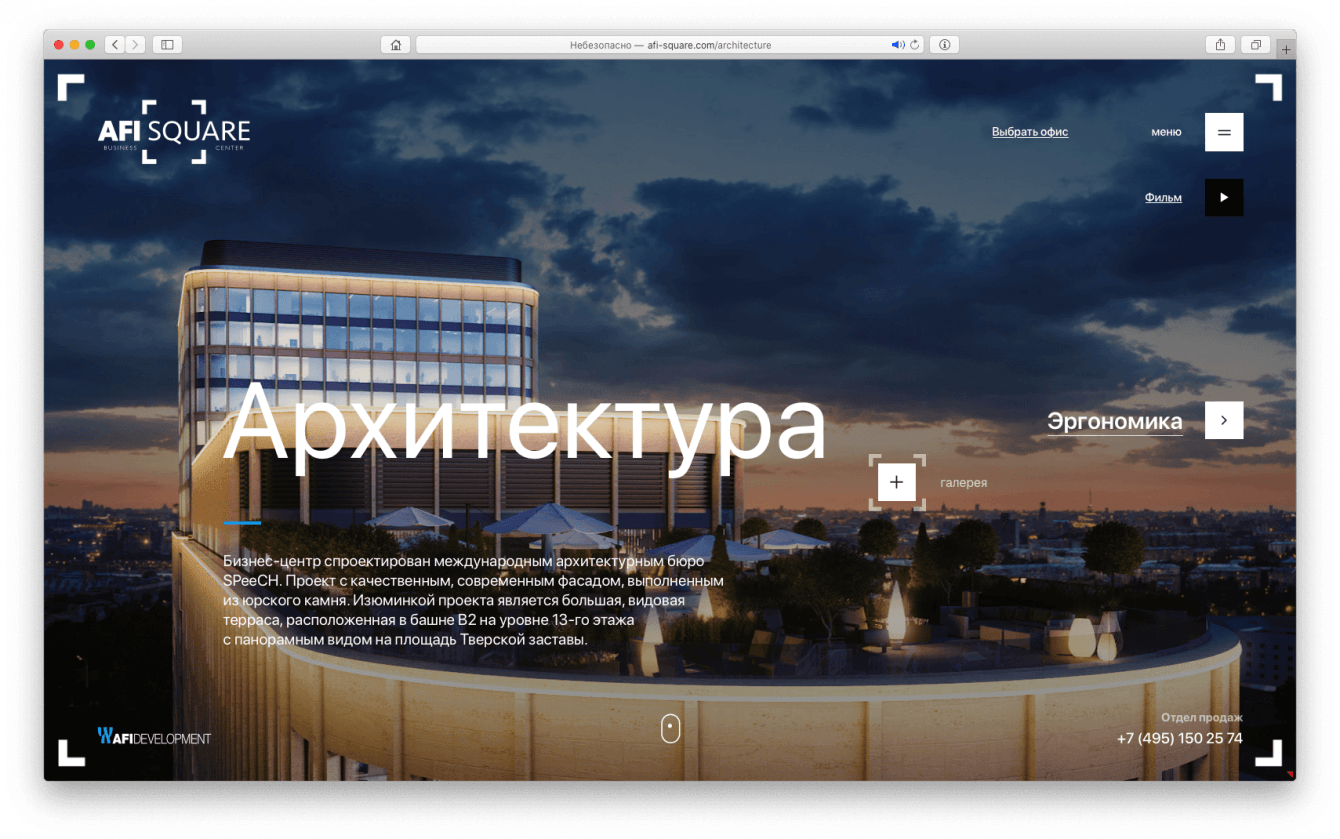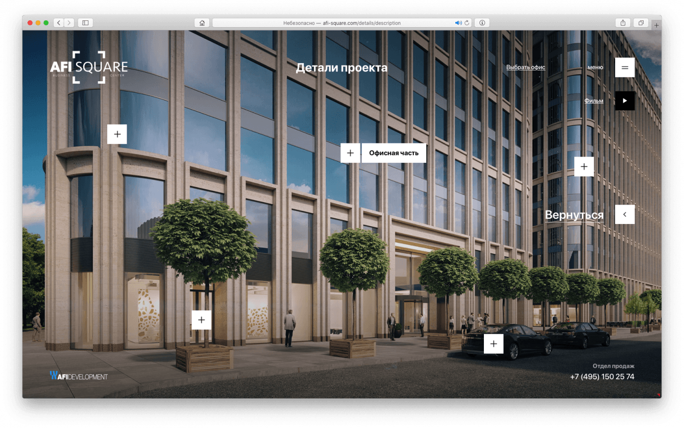 Разработать дизайн-код подачи проектов премиальной коммерческой недвижимости в интернете для компании AFI Development и вывести на рынок флагманский проект в сфере коммерческой недвижимости – бизнес-центр класса «А» AFI SQUARE.
