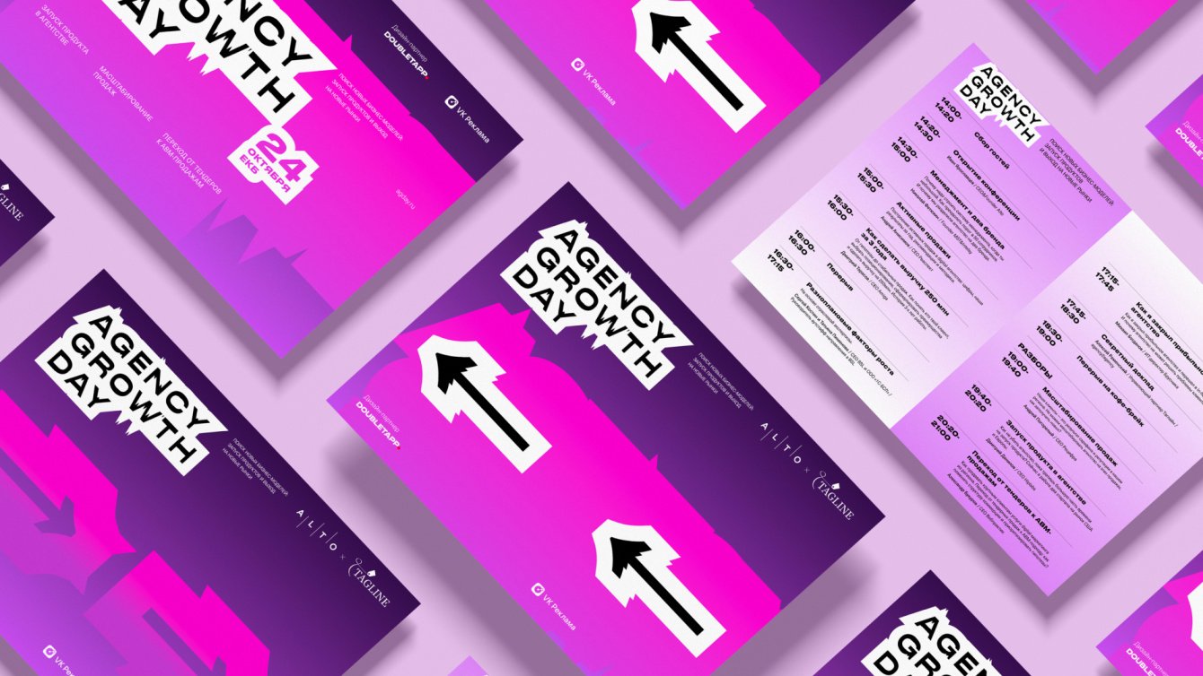 Яркие цвета, уникальные формы, гипертрофированная обводка букв и слова-триггеры стали основой визуальной концепции Agency Growth Day. Метафора о «цифрах наизнанку» передала главную идею мероприятия — возможность посмотреть на жизнь других агентств изнутри.