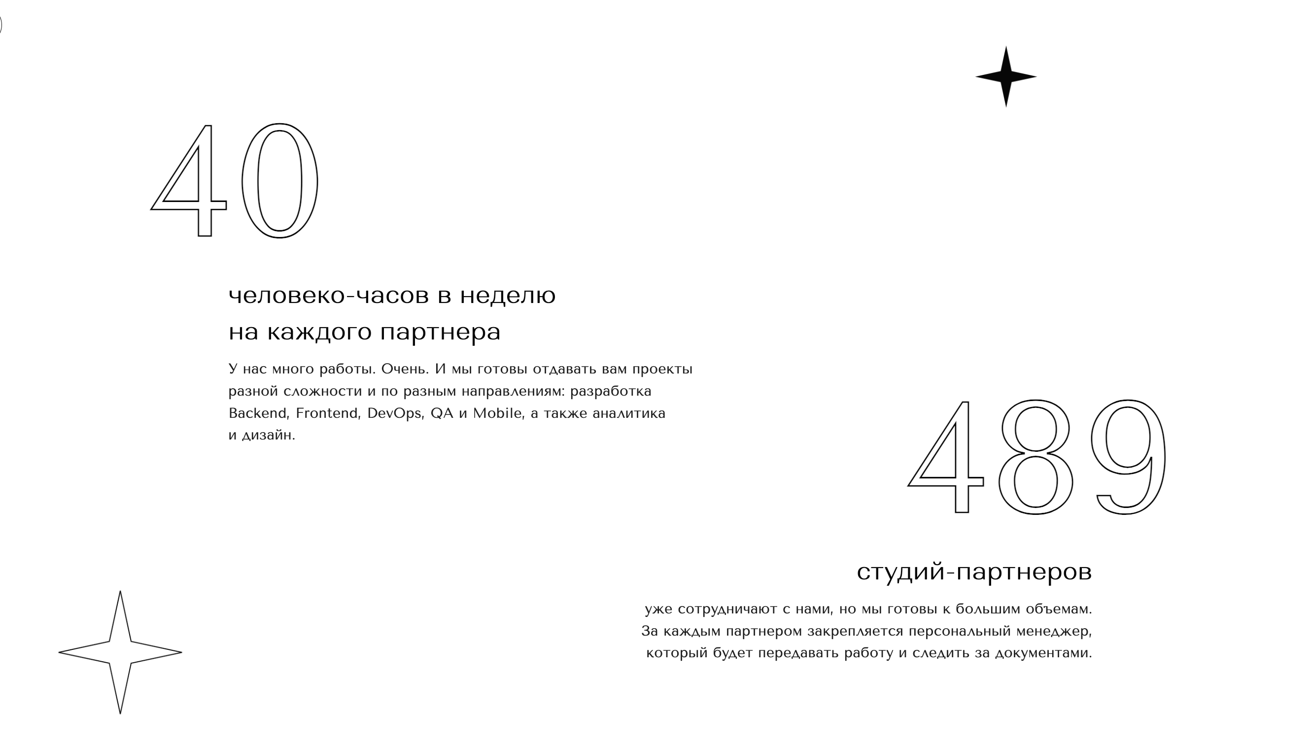 — Проработали нашу ЦА, описали роли, стеки и количество часов, которыми можем обеспечить партнеров
