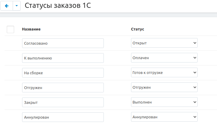 Также мы добавили сопоставление статусов заказов 1С и CS-Cart. Теперь менеджер может настроить их соответствие через панель администратора.